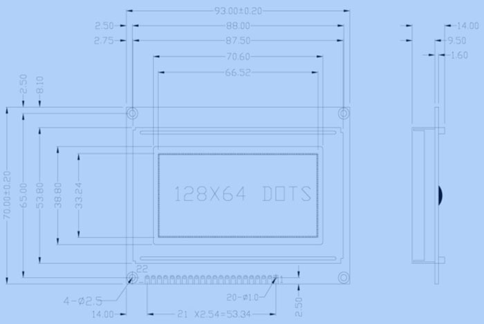 显示内容:128(列) * 64(行)点
